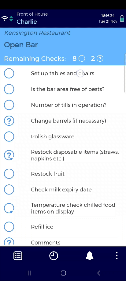 How you complete a check will depend on which type it is. For example, you may be required to select an option, type a response, etc. See below for more details.