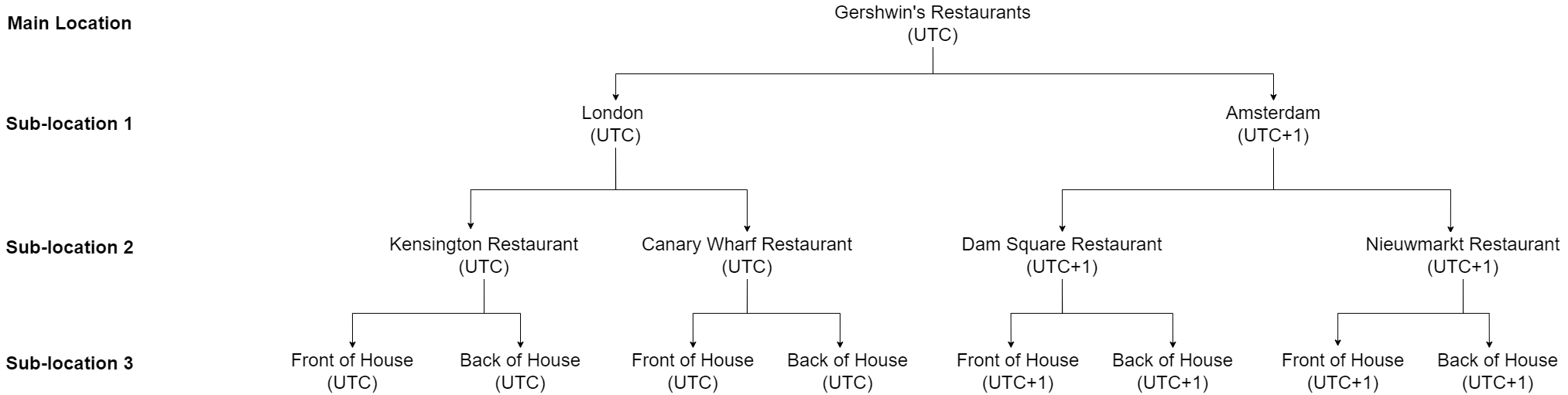Any person you assign to a location will also have access to its sub-locations. For example, a Safety Manager assigned to Canary Wharf Restaurant can create sensor rules, clear alerts, etc. from Canary Wharf Restaurant, Front of House, and Back of House.