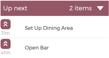 Scheduled checklists that will be due within the next hour appear under the Up next heading.